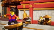 Ignorando el hecho, Bleckt guió a los ninjas por un recorrido alrededor de la ciudad mientras explicaba cosas del entorno, como la arquitectura del sitio; pero esto fue interrumpido por Roby, a lo que Bleckt intentó argumentar que la Ciudad de los Templos debía ser tratada con respecto, lo que no convenció a su sobrino.