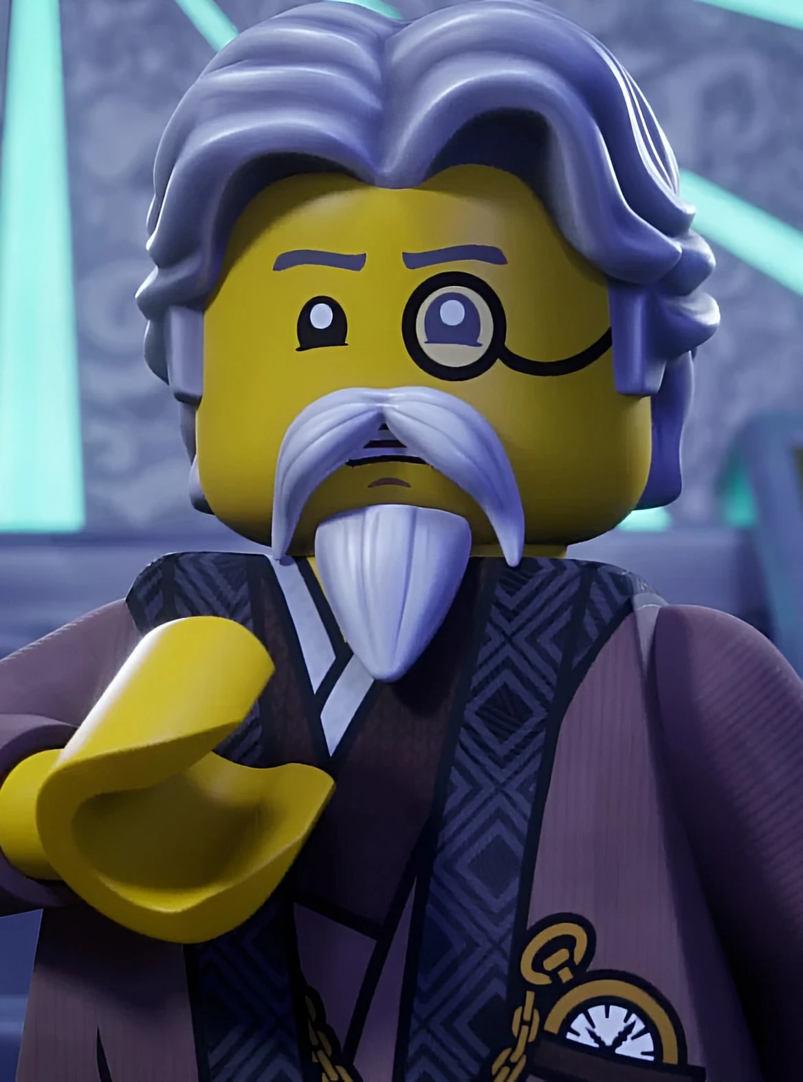 - Su minifigura es muy diferente de su contraparte de televisión porque tiene piernas sencillas, un bigote impreso en la cara en lugar de su bigote tridimensional, rasgos alrededor de los ojos y un atuendo más claro.