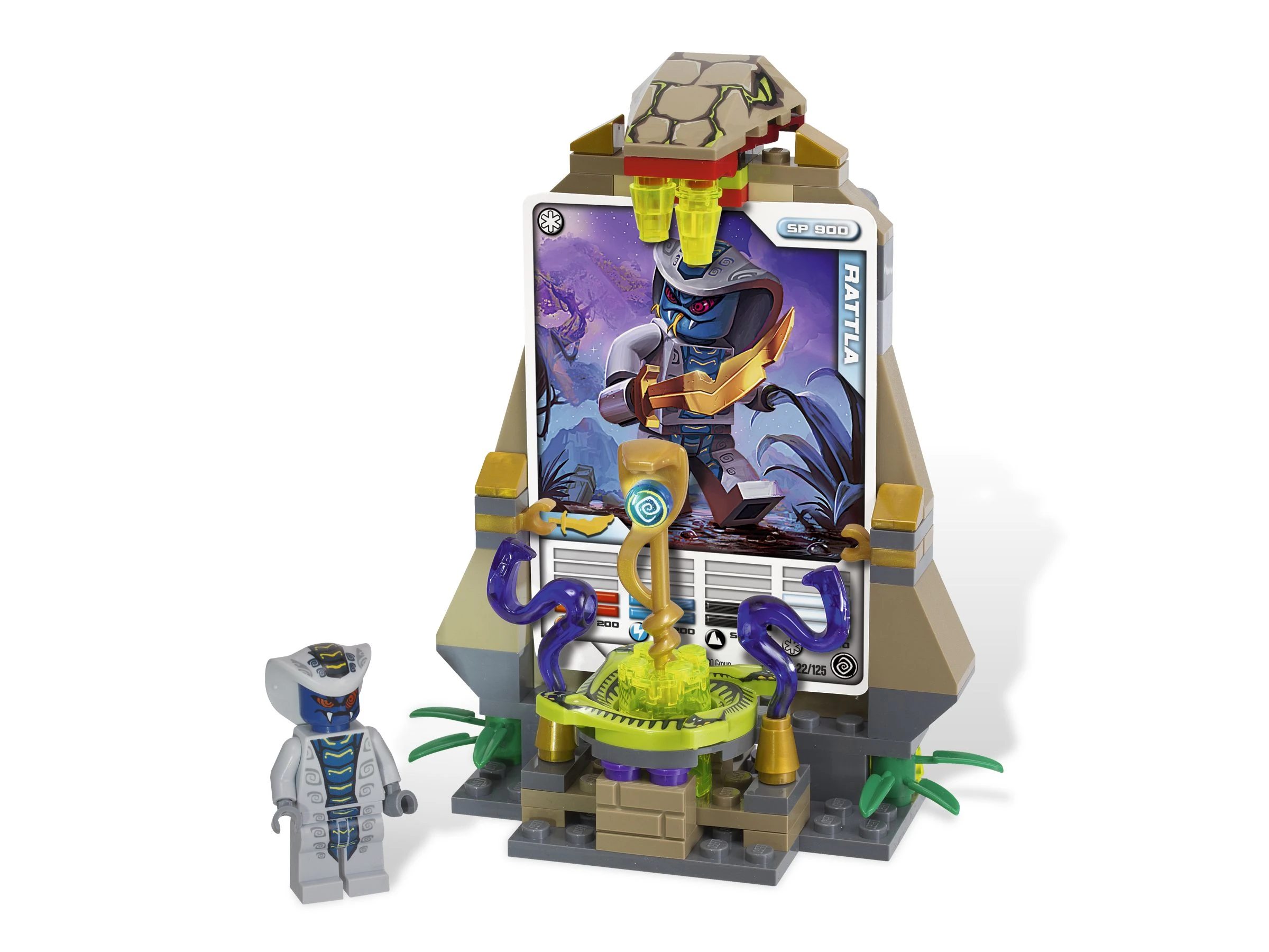 850445 Świątynia Karty Postaci jest jednym z zestawów Ninjago. Zawiera Rattlę i świątynię z jego kartą.