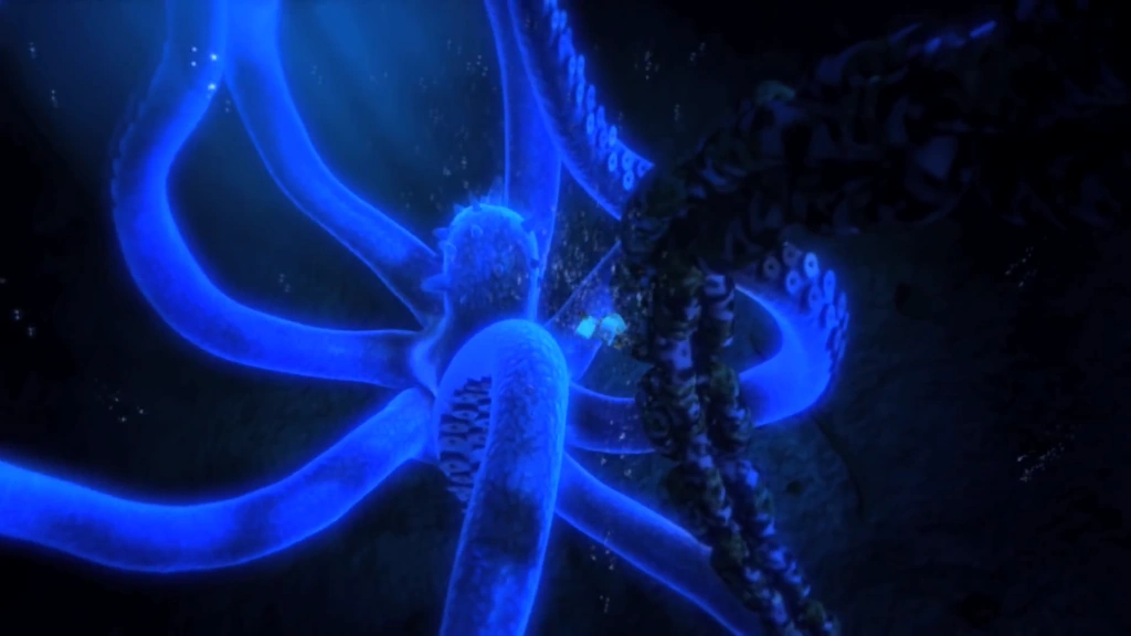 Krótko po pojawieniu się Ninja na wyspie, Lewiatan wynurzył się z oceanu. Nie zauważając intruzów, którzy schowali się w wieży, powrócił pod wodę. Wieczorem, Lewiatan wynurzył się ponownie, kiedy dr. Julien i jego goście odlatywali z wyspy. Potwór chwycił ich statek i zaczął ciągnąć w stronę morza. Lloyd użył swojej mocy, by macki stworzenia puściły ich pojazd, jednak Lewiatan złapał go ponownie. W końcu Zane zanurkował i uszkodził łańcuch wiążący Lewiatana, uwalniając potwora. Gdy Lewiatan zauważył, że jest wolny, puścił Perłę Przeznaczenia i odpłynął.