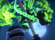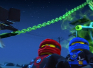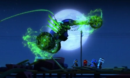 Ниндзя высаживаются на железнодорожной станции, однако на них нападает Рейт. Зейн кидает в него сюрикены, однако они проходят сквозь призрака. Рейт наматывает круги и атакует Ниндзя, но врезается в их убежище. Он разворачивается и снова атакует. В процессе атаки он превратил яка Коула в призрака. Он еще раз атакует и зацепляет Кая цепью. Кай освободился и Рейт ушел под землю. Он вылез из под земли и его мотоцикл начал лететь. Он зацепил катану Коула, но последний зацепил его цель за вышку с водой. Рейт падает с мотоцикла и на него проливается вода, убивая его.