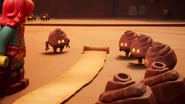 Пытаясь справиться с волной жара, Кай внезапно убегает, и Вайлдфайер следует за ним, прежде чем наблюдать, как он разбивает несколько камней, что, по ее мнению, было пустой тратой времени, пока она не обнаружила, что он ищет жеоды. Набрав достаточно, Кай и Вайлдфайер расплавляют кристаллы жеоды, чтобы приложить к ране Хитвейв, что, к ее удивлению, по мнению Вайлдфайер, не сработает, пока рана не остынет.
