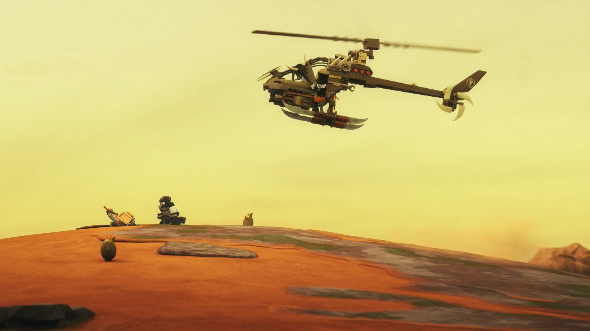 Позже Охотники на Вертолёте догоняет Ниндзя за каньоном и помогают Железному барону подняться на борт. Пилот вертолёта говорит, что Охотники заставят Фейт заплатить за предательство, но Железный Барон хотел поймать лишь Ву. Когда Ниндзя захватывают под контроль Дизельнаут, они уничтожают Вертолёт о скалы с помощью гарпуна.