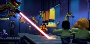 В лифте были обнаружены Техно-клинки и программа заблокировала Ниндзя выход. После чего лифт стал стремительно падать, но Ниндзя выбрались.Попав в Башню Борга он встретили Роботов Безопасности, которые прострелили окно и Ниндзя вылетели в него, однако спаслись. Позже Боевой вертолёт, которого Зейн быстро перепрограммировал Техно-клинком.
