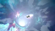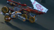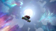 Наземная Щедрость с огромной скоростью вылетает из портала, после чего на скорости повисает на краю пропасти, и ниндзя успевают спастись до того, как транспортное средство упадёт вниз и будет разрушено.