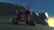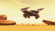 Когда ниндзя запланировали отправиться в Роковую пустыню, что бы исследовать древнюю пирамиду, П.И.В.В.Ж. уведомила их о недавно построенных средствах передвижения. После того как они осматривают Пещеру Самурая они берут с собой «Дар земли», Катану 4x4 и Земляной байк, отправляясь в пустыню. Спустя некоторое время езды они останавливаются у оазиса и отдыхают, пока на них не нападает Беогерни. Они пытаются сбежать от зверя, однако гигантский жук успевает проглотить один из двигателей вездехода, без которого он не сможет двигаться.