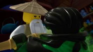 В узком проходе в корабле Зейн и Кай пытаются задержать Морро. Кай сражается катаной с Морро, Зейн прикрывает его сюрикенами, но они терпят поражение. Морро бежит за Ву, ударяет его потоком ветра и руки, захватывает посох и залезает Дракона, сломав корабль и улетев.