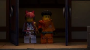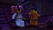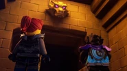 Утром, Коул рассказывает Зейну об этом здании, а Ния собирается покинуть Город храмов для поисков Джея. К ее удивлению, она вместе с Райю слышит голос Кая и связывается с ним благодаря силе дракона. Выясняется, что он вместе с Костель делают это благодаря чешуйкам Райю, оставшимися на кимоно. Однако не только они связываются с людьми из Слившихся миров. Запретная пятёрка также имеет контакт с кем то снаружи, а один из них и вовсе кем то управляет, время от времени застывая. Спустя время, перед новыми играми, Арин показывает Ниндзя свои успехи в расследовании. Основными подозреваемыми являются Рас, Зиатрикс, Блект и Зур. Народ последнего, по слухам, пользуется рогами драконом для увеличения своей силы. По совету Коула, Арин отправляется в Музей Города храмов чтобы выяснить больше о символе, который он находил ранее. Там он замечает картину с портретами Заркара и основателя турнира. Но больше всего его привлекает то, что тот же символ имеет Роби. Возможно, он как то связан с гибелью Матриарха? Арин рассказывает об этом Вайлдфайер, которой еще с начала турнира понравился ее новый лидер. Тем не менее, она соглашается пойти с ним на расследование. Кроме того, перед играми, Ллойда вновь посещает ведение. На этот раз оно связано с Зиатрикс, и Зеленый ниндзя делится мыслью о том, что сегодня он проиграет.
