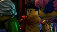 Ниндзя ложатся спать, но ночь не проходит спокойно. Незнакомец в капюшоне тайно проникает в здание Ниндзя и пытается обезвредить Ллойда ядовитым оружием. Благо, в этот момент просыпается Райю и поднимает тревогу, после чего Мастер Энергии начинает за ним погоню. Догнав его посреди Города храмов, Ллойд вместе с организаторами и всеми участниками турнира начали дискуссию. Оказалось, что этот незнакомец был ботом. Что странно, такие же были подосланы к Клану волков и к Зуру, Мастеру стихии Рефлекса. Тем временем, Токс приходит к выводу, что шип от оружия, содержащий яд, имеет происхождение из Материнского сада, где все решения принимаются только с позволения Зант-Танца. И хотя Ниндзя были уверены, что он не виноват, все остальные требовали отстранить его от турнира, что и произошло. После окончания дискуссии, Ния увидела в толпе Мастеров Джея и бросилась к нему, но не успела его догнать, о чем поделилась с Ллойдом.