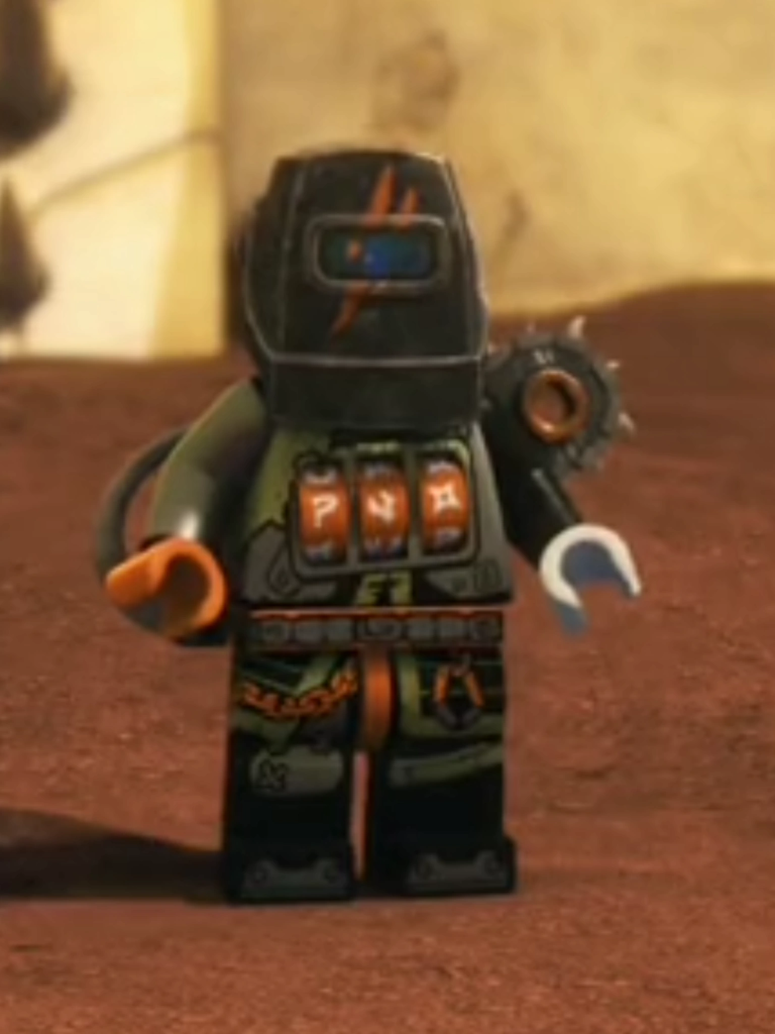 - Его лицо никогда не было полностью показано в сериале, но в наборах у него лицо Мазла, который может быть скупостью LEGO.