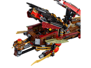 - Destiny's Bounty features a retractable handle for easy flying, 4 lever-operated adjustable sails, 2 triple-stud-shooting cannons with ammunition, storage compartments with a crowbar and Katana, rotating dual flick harpoon shooter with engine transformation function, opening roof, detailed interior, Aeroblade, detachable roof element including Nya's foldout workshop with hidden airbike and assorted tools, bucket, pirate hat with feather, cup, treasure chest with golden teapot, rat, cheese element, and golden Ninja blades and decorative elements