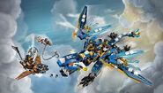 70602 Jay's Elemental Dragon is a LEGO Ninjago: Masters of Spinjitzu - Skybound set released in most countries on January 1, 2016, but on March 1st, 2016 in the United States and Canada. It includes Destiny Jay, Cyren, Monkey Wretch, the Djinn Blade with Nya in it, the Lightning Dragon, and a small Sky Pirate flyer.