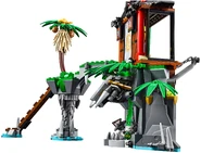 - Tiger Widow Island features a tower with a coconut-dropping function, vine for a Ninja to swing down from, a Ninja mission room with swinging lantern, Ninjago map and mission instruction elements, a cave with lever-operated opening entrance and hidden crystal and golden elements, plus Ninja decorations, palm leaf and translucent fire elements.