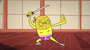 The Ninja and dragon do all sorts of chores from feeding fish, cutting vines, washing dishes, ironing gis , cleaning the bathroom, emptying the fridge, they take a untold break but are soon put back to work. They start scrubbing floors, polishing gongs, cleaning the living room, changing the lightbulb, chopping the firewood, doing laundry, painting the bedroom, wax the floor, cleaning the ceiling, polish the banisters and cleaning the sun room. They work too hard and eventually fall asleep from all cleaning.