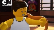 Meanwhile, Kai looks at the paintings in the museum and finds the painting of his parents. As he says he wishes they were here, he remembers to when his parents introduced him to a newborn Nya. While looking, Dr. Saunders tries to hit him but Kai turns around before he can strike. Kai asks for the helmet's origin, with Dr. Saunders explaining it could be a cheap knockoff and lets him look around while he looks at it.