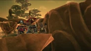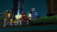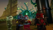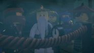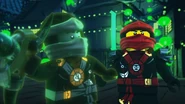 The ninja used their Aeroblades to battle the Ghost Warriors and The Preeminent. Kai used his Aeroblade to cut one of The Preeminent's tentacle but discovered she can grow more. After getting the citizens of Stiix, the Ninja used their Aeroblades to break the bridge to cause The Preeminent to shink into the sea but her Ghost Warriors armored her with buildings so she can walk.