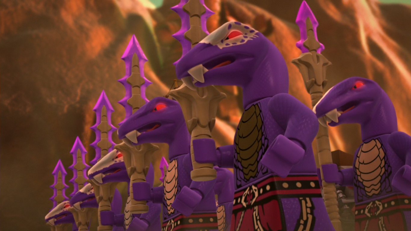 It is also notable that Chen mentioned that this was the sharpest blade in existence. This was reinforced when Clouse and Garmadon fought, with Clouse using this weapon while Garmadon used a regular sword. The Anacondrai Blade easily sheared the top off the regular sword, despite the latter being made of metal.