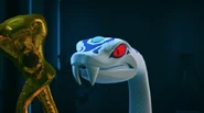 Snake staff of the Anacondrai tribe and a symbol of the power of the Anacondrai general. It is designed to look like a snake wound around a pole, with the purple symbol of the Anacondrai on the snake’s chest. It is one of five staffs in existence, one for each Serpentine tribe. Concealed within the staff is a vial of anti-venom, which causes the user to temporarily taste so bad that even an Anacondrai will not swallow them. When the anti-venom is combined with that of the other four staffs, it creates a white liquid which provides a map to the location of the Fangblades.[1]