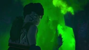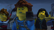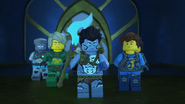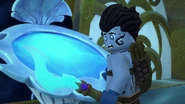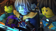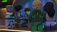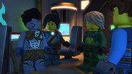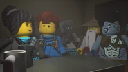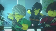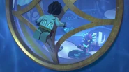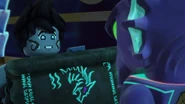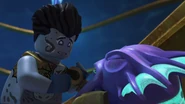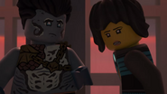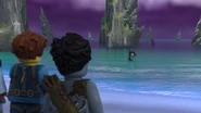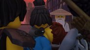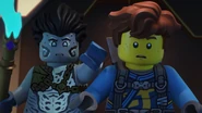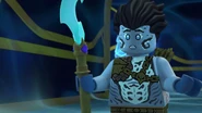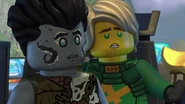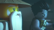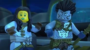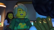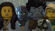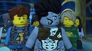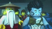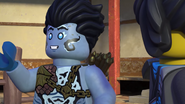 He later fell asleep with the ninja and Wu. He woke up when Nya tried to merge with the sea and quickly realized what she was doing. When Wu asked him, he replied that she wanted to merge with the sea, and then everyone ran out of the building to stop her, but to no avail.