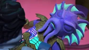 When Kalmaar broke into the Bounty, he greeted Benthomaar and aimed the trident at the ninja. However, Bentho defended them and said they were his friends. Then Benthomaar removed the spear from his back and turned it a few times in his hand to get into a fighting pose. However, Kalmaar knocked the spear out of his hand and threw it on the floor. He then destroyed the devices in the Hydro Bounty and swam away as the ninja and Benthomaar stepped out of the submarine and realized they had no way to get away.