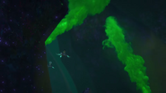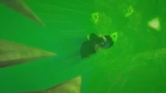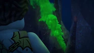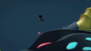As Kalmaar chased them in Merlopia, Bentho told the ninja that he knew where the tunnel they could escape was, so P.I.X.A.L. aimed the submarine there. They then managed to shake Kalmaar off in a tunnel by redirecting a group of missiles to cause a cave-in right as the Bounty passed through.