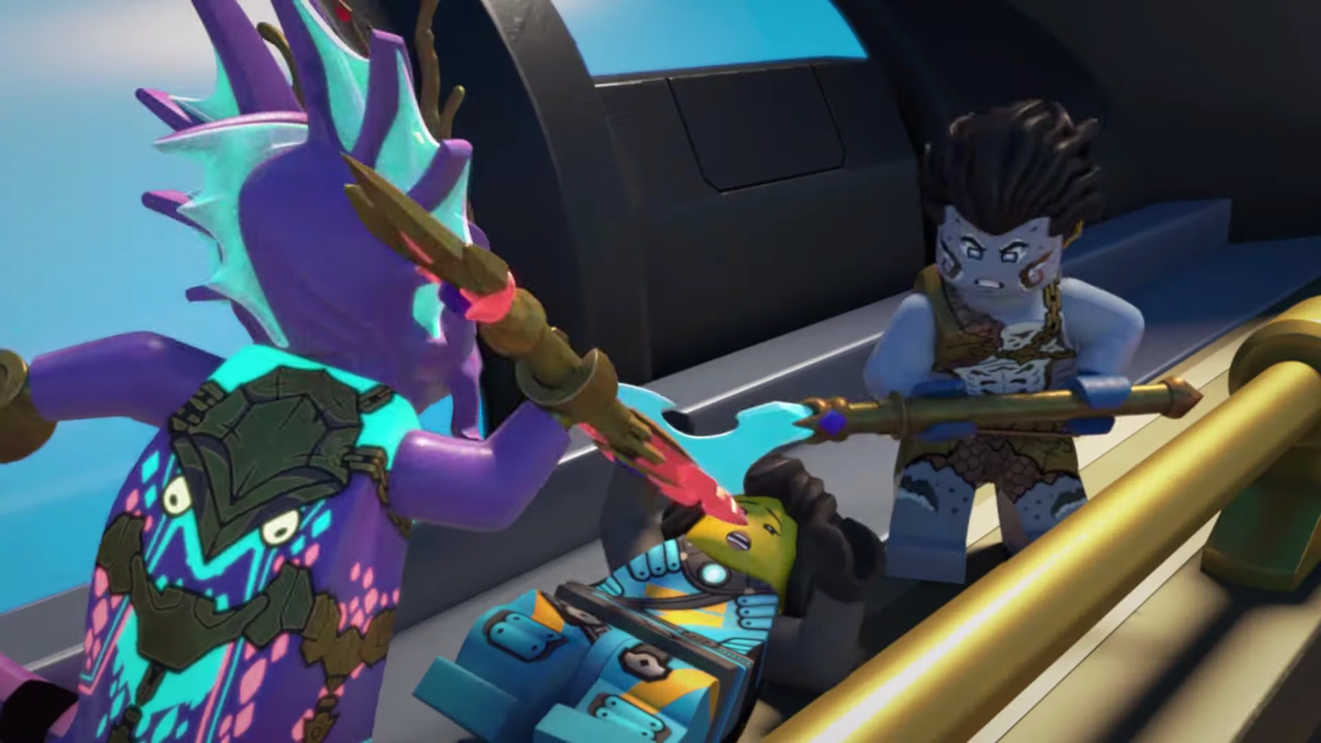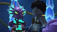 - Both also learn that their evil relative (Kalmaar and Vangelis) have committed immoral actions (using Wojira to destroy Ninjago and enslaving the Munce and Geckles) and at the end, they finally stopped declaring them as their relatives and watched them taken away by their own allies (Wojira and Army of Shintaro). Then, both of them became the rulers of their kingdoms.