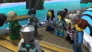 They then emerged from the Bounty and the Keepers led them into the village. There, the ninja and Bentho learned that the Storm Amulet was fake, so they quickly returned to the Bounty, where they contacted Cole and told him that the amulet was in the Explorer's Club.