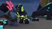 When they arrived at the harbor, Benthomaar stood against Kalmaar and fought him. Kalmaar tried to deceive him by requesting to join sides, with which Benthomaar disagreed. He sent a blast from his trident at Benthomaar, which he dodged. However, Gripe hit him from behind. Bentho then fell to the ground and told Nya to pursue him.