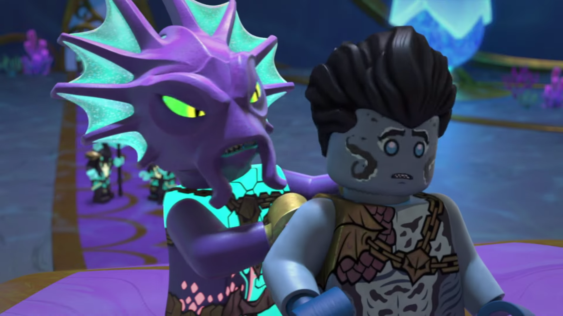 After returning to Merlopia, he was crowned King of Merlopia and became the ruler of the Endless Sea. One year after Nya's sacrifice, King Benthomaar, the Maaray Guards, and the Keepers, alongside lots of the Ninja's other allies, joined them in the final battle against the Overlord and his army of Crystal Warriors, also helping the Ninja to achieve Dragon Form and succeed in the Overlord’s defeat. After the battle, the allies were called again by Dareth to help the Ninja rebuild the Monastery of Spinjitzu.