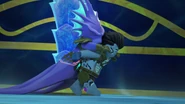 When Kalmaar destroyed Nya's water body and defeated Jay, Benthomaar jumped on Wojira's forehead and attacked his brother to seek revenge. When Kalmaar told him that he was unable to face his king, Benthomaar told him that he was not his king or brother, and that he would pay for what he had done to their father. Kalmaar then grabbed his spear and broke it, knocking Benthomaar off Wojira's forehead. During the fall, however, the younger brother threw the arrow from his quiver at his brother and destroyed his trident, thus abolishing his rule over Wojira, who then devoured him. When Kalmaar was dead, Benthomaar looked sad and slightly regretted his brother's death. When Wojira was attacking the ninja, he tried to escape her, but when Nya returned, he watched the fight.
