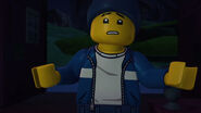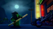 Having been framed, Jay visits the tavern, and the only person there is busy watching the TV. Jay tries to obtain ninja chips from a vending machine using his Lightning but fails and leaves.