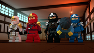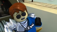 They headed to Dareth's dojo, where they met Master Wu. The wily old man quickly saw through their disguises and tricked them into revealing their true natures by faking them out on where they had supposedly been. When Bizarro Kai answered affirmatively, Master Wu attacked, revealing that the ninja had gone somewhere else. The ninja managed to subdue Master Wu, and they headed to the auto body shop after Nya called to ask Jay if he was still meeting her there. Once at the auto body shop, Bizarro Jay sweet-talked Nya and drew her in for a kiss, leaving her off-balanced long enough to steal the Ultra Sonic Raider.