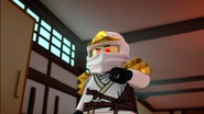 They headed to Dareth's dojo, where they met Master Wu. The wily old man quickly saw through their disguises and tricked them into revealing their true natures by faking them out on where they had supposedly been. When Bizarro Kai answered affirmatively, Master Wu attacked, revealing that the ninja had gone somewhere else. The ninja managed to subdue Master Wu, and they headed to the auto body shop after Nya called to ask Jay if he was still meeting her there. Once at the auto body shop, Bizarro Jay sweet-talked Nya and drew her in for a kiss, leaving her off-balanced long enough to steal the Ultra Sonic Raider.
