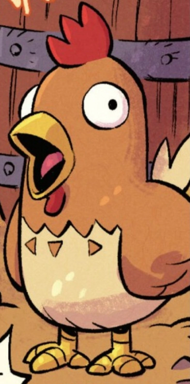 Buck Buck accompanied Asa as the latter foraged for food. After failing to catch a rabbit, the two followed it into the Shadow Dojo where Buck Buck noticed a discarded Wolf Mask. Shortly afterward, The Lycan King emerged from the shadows of the Dojo and captured Asa; the lycanthrope's presence was enough to cause Buck Buck to turn tail and flee in terror, eventually making his way back to the Children of the Wolf where he collapsed in terror. As the children cradled the exhausted chicken and offered him some water, Buck Buck revealed to them that Asa had been taken by the Lycan King.