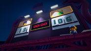 The Royal Arena was the site of the Thunder Blade challenge during the Tournament of Elements. Lloyd was pitted against Chamille in what seemed at first like a simple event: a race on roller skates while carrying Jade blades. But the other Elemental Masters were also allowed to race, primarily to sabotage one contestant or the other. The arena features a large, circular track and an electronic scoreboard. Chen’s Royal Arena is also referred to as Thunder Blade Arena.[1]