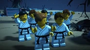 As the morning came and the curse on Yang's Temple started to take effect on the ninja, he showed himself, revealing the student to be chained up, as he was imprisoned by Yang. The ninja then quickly fled to the entrance, not wanting to suffer the same fate as him and the other students. They manage to reach the entrance, but Cole dropped the scroll mid-way and thus had to go back in to retrieve it, which caused him to turn into a ghost. Fortunately, he escaped the temple before he can meet the same fate as the students.