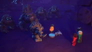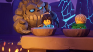 Master Wu and Lord Garmadon traversed through the Mountain of Madness together, making their way toward the summit. However, Lord Garmadon realized that the moon had already risen, commenting that the Craglings would never miss out on a midnight snack. Master Wu and Lord Garmadon briefly chatted before dozens of boulders formed together, which created a group of Craglings.