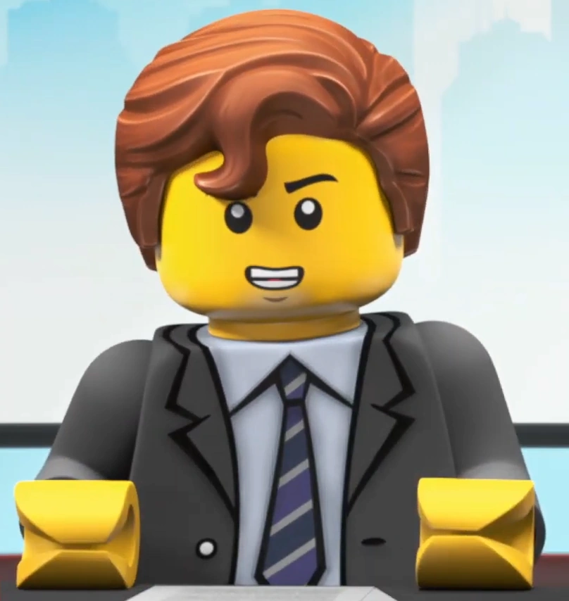 - He uses the same hairpiece as Cecil Putnam in brown, originally Superman's from LEGO's DC Super Heroes theme.