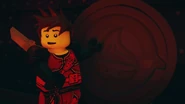 Kai discovers the blade in the secret room after hitting a gong in the shop, revealing a secret trapdoor. Wondering what else his father had been working on, he discovers an old Vermillion helmet and realizes that his father is still alive. Before he left, he takes the Dragon Blade.
