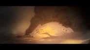 The dragon keeper ambushes a samurai warrior attempting to reach the ninja statues. He battles the warrior and is able to turn him to gold. He then turns to smoke.