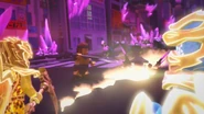 Earthquake Generation - It can be used to cause earthquakes, allowing the user to create shaking tremors along surfaces (walls, ceilings, etc.) that creates dust and dust particles to reveal a hidden enemy or rupture the ground by pounding it. Lloyd used this to raise a portion of the ground in "The Day Ninjago Stood Still".