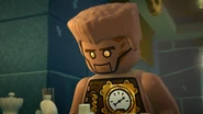 Zane (nicknamed Echo Zane) is a Nindroid built by Dr. Julien using the original Zane's blueprint. His appearance is somewhat similar to his template, except he appears rustier, and instead of an energy core, he has a wind-up power source. He seems to be less intelligent, although his sense of loyalty and friendship is no less than his titanium-shelled sibling. Echo Zane was found in the basement through a secret passage found by Jay and Nya in Lighthouse Island.