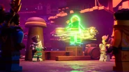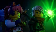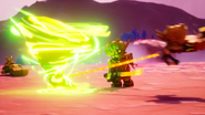 When the Ninja were confronting Nadakhan, Lloyd released Energy at a pillar to distract the pirate captain for Kai and Cole to attack, only to fail until Jay distracted the djinn enough for the Green Ninja to hit the latter with an Energy blast.