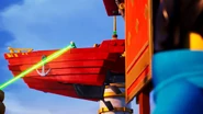 After Lloyd accidentally used his elemental power for the first time, which resulted in the ninja being trapped under the mast. But Nya, in her Samurai X mech, stops the pirates, and repairs the ship.
