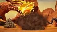 Wu flies the dragon over the hunters camp, prompting them to prepare an attack. However, this ended up summoning the real Firstbourne to attack the camp. After releasing the dragons, the ninja escape, and Iron Baron orders the hunters to find them.