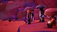 The Five eventually recovered and attacked a pair of Crossroad citizens to steal their supplies before heading to the First Land to release Thunderfang. Once they arrived in the First Land, the group terrorized the Storm Village, which was inhabited by the peaceful Dragonians. When Nokt found the entrance, the Five went in, where they found Thunderfang had been expecting them, much to their confusion. Thunderfang comments that their entitlement and ego remind him of his younger self, correctly guessing the Five came to him with a "deal" to cut his chains so he can give them more of his power. The Shatter Dragon agreed to their "deal" and gave them the Sobrient Stone to help on their quest to find the five Prismatic Blades. Taking the Sobrient Stone, Nokt shatters it, releasing its dark energies to corrupt the Dragonians into an army to aid in their quest as well as granting the Five the ability to fly. The corrupted Dragonians also gained the ability to sense Prismatic Steel.