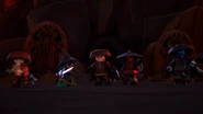 While Nokt, Rox, and Drix stayed in the Spectral Lands to guard the Well of the Lost, Zarkt was sent to the Cave of Bells in Mysterium and Kur was sent to the Cave of Bells in Djinjago. Nokt, Rox, and Drix fought Lloyd and Arin, trying to take the Unbidden Storm, but they manage to use their Prismatic Ore-coated mechs to get into a cavern that leads underneath the Well of the Lost. At Mysterium’s Cave of Bells, Zarkt fought Kai, Nya, and a coconut copy of Gandalaria, where he attempted to break the cave's center focus crystals, which is connected to the Arc Dragon of Focus. Kur went to Djinjago’s Cave of Bells, where she encountered Sora, Wyldfyre, Frak, and Riyu and attempted to destroy the focus crystals there. However, the Five failed to stop the Ninja, which resulted in Thunderfang being vanquished, and their souls disappeared into the unknown.