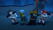 While attacking Ignacia, Frakjaw and Krazi encountered the ninja from the future, attempting to attack them, only to be overwhelmed by a far more powerful and experienced Jay. When they failed to kidnap Nya, he and the rest of the Skulkin retreated on Samukai's orders, riding on one of the Skull Motorbikes. While sitting at a campfire with his fellow Skulkin, he presumably bore witness to Kruncha's return with a captured Nya in tow. Later, when he and the others ambushed the ninja at the Forest of Tranquility, Jay presumably defeated them all and took the Golden Weapons.