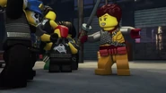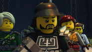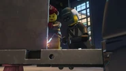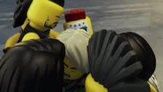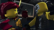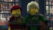 The garbage depot was ambushed by Sons of Garmadon. Nya, Lloyd, Skylor, and Dareth got away in the armored vehicle while the rest of the Resistance stayed behind to fight.