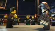 When Dareth went outside to relieve himself, he saw the depot ambushed by the Sons of Garmadon.